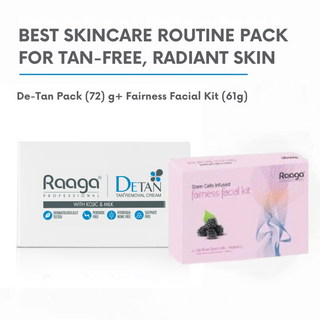 Raaga Professional Skin Brightening Combo: Kojic and Milk De-Tan Pack (72g) & Stem Cell Infused Fairness Facial Kit (61g) Dermatologically Tested for All Skin Types